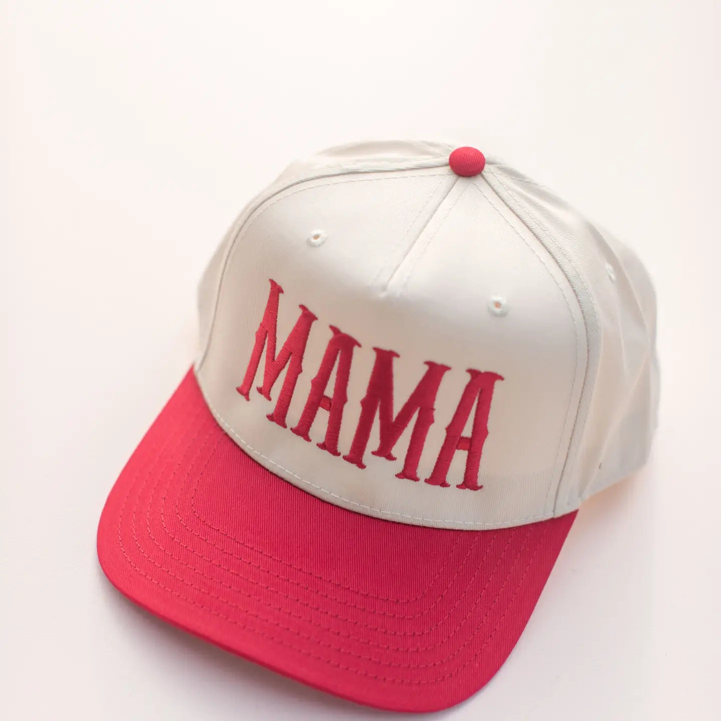 Bring some fun flair to your wardrobe with this red and cream embroidered trucker hat featuring bold "MAMA" lettering. Its adjustable fit keeps you comfy whether you're out and about or just chilling. Perfect for adding a playful touch to casual days!