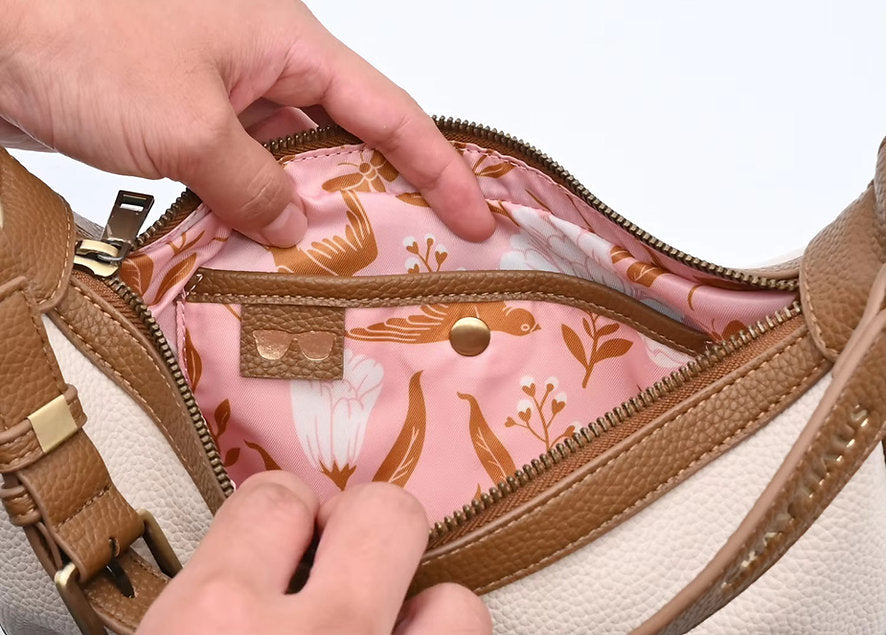 Meet *the* go-anywhere, wear-everywhere bag that nails the balance between chic and practical. The Capri’s crescent silhouette sits perfectly whether worn crossbody, on the shoulder. Quintessential Gray Haus interior pattern - because the inside should feel as good as the outside.