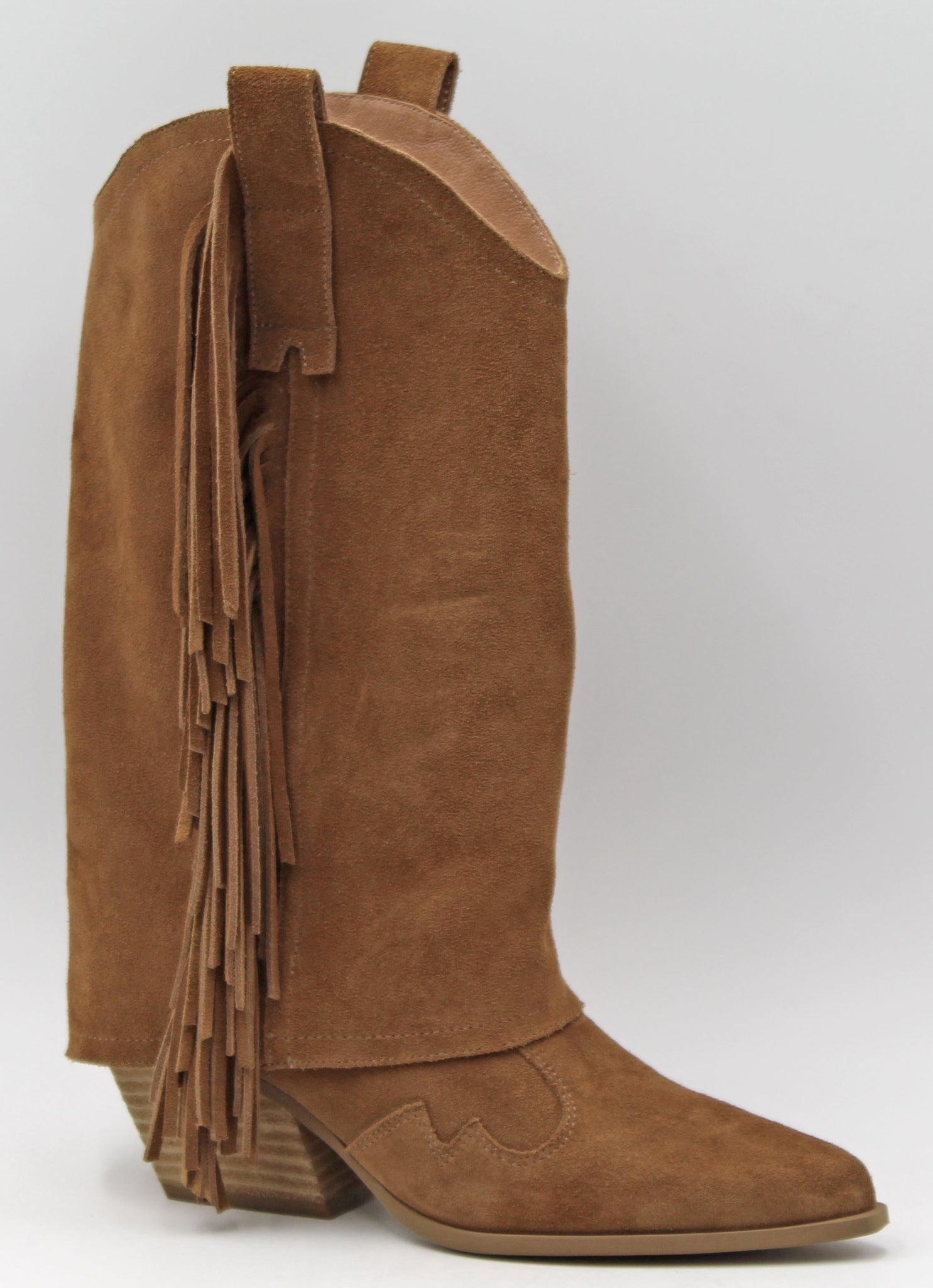Step into the wild west with a playful twist in these Deston suede boots. Featuring side fringe details and a classic cowboy style, they bring fun movement to your stride. The sturdy block heel adds confidence and comfort, making these boots perfect for dancing through the day or night. Add a little extra charm to any outfit with this fresh take on western flair!