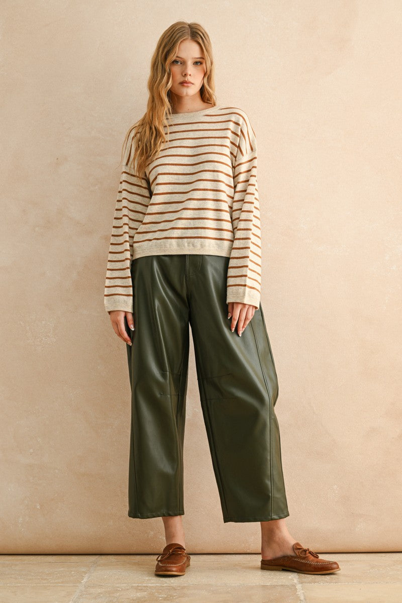 The Joelle top combines a soft, knitted fabric with a cheerful striped pattern for a fun and cozy look. Its long sleeves and trendy drop shoulder design make it perfect for relaxed days or casual outings with a playful twist.