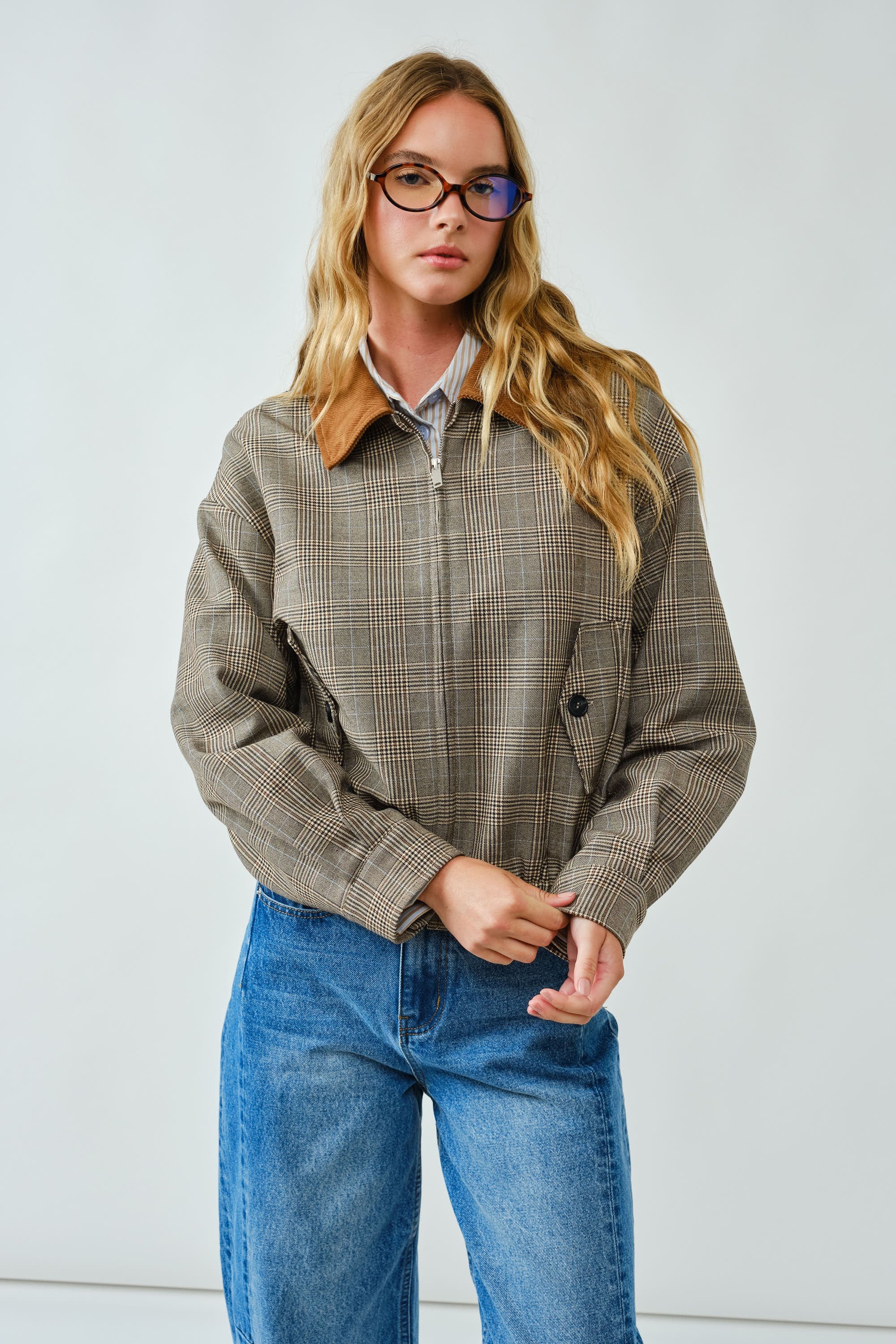 Meet Louie, the bomber jacket that fuses timeless charm with a playful modern twist. Featuring a classic plaid print and a contrasting corduroy collar, this jacket adds fun flair to any outfit. The front zip closure and flap pockets keep things practical, while the elasticized hem ensures a comfy fit. Fully lined for extra coziness, Louie is ready to brighten your look with a dash of spirited style.