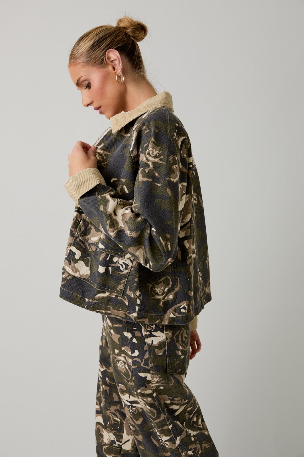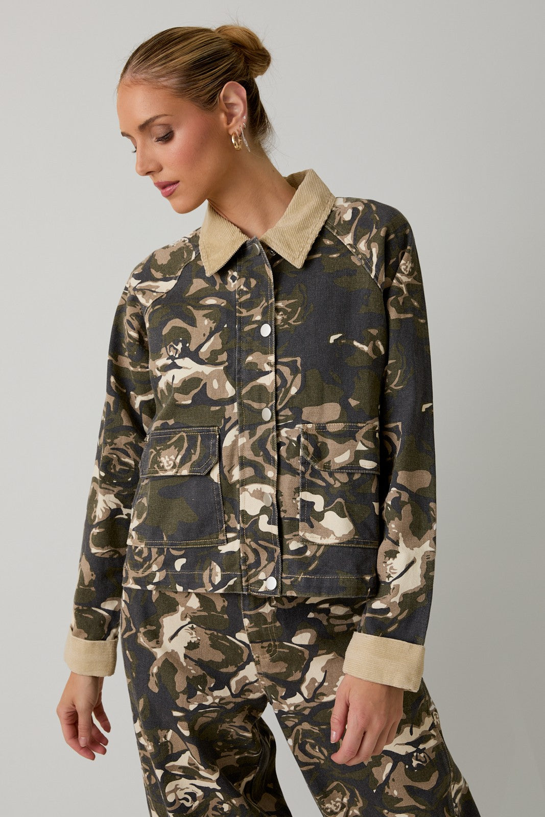 The Reese military barn jacket brings a fresh twist to classic rugged style with its playful modern camp print. Featuring a bold contrast collar and sleeve cuffs, this jacket zip fronts for easy wear and offers handy pockets to stash your essentials. Perfect for adding a bit of fun to your outdoor look while keeping you warm and ready for adventure.