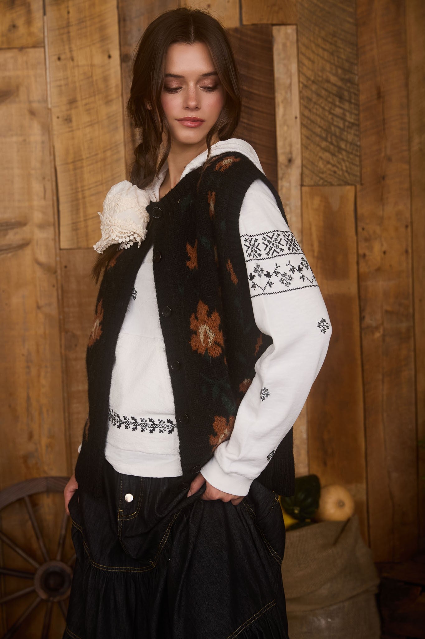 Bring a fresh twist to your wardrobe with the Amalie cardigan. This playful knit sweater features a button-down front and a rounded neckline that add charming details. Its sleeveless, relaxed fit and vibrant floral pattern make it perfect for layering over your favourite tops, keeping you comfortable while turning heads wherever you go.