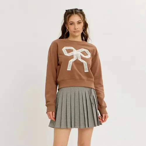 The Cambria sweatershirt brings cozy charm with a playful twist. Featuring a cropped fit and long sleeves, it’s perfect for layering or wearing solo. The classic crewneck is accented by a delicate lace ribbon bow, adding a sweet, feminine touch to your everyday look. Ideal for those who love comfort with a hint of whimsy.