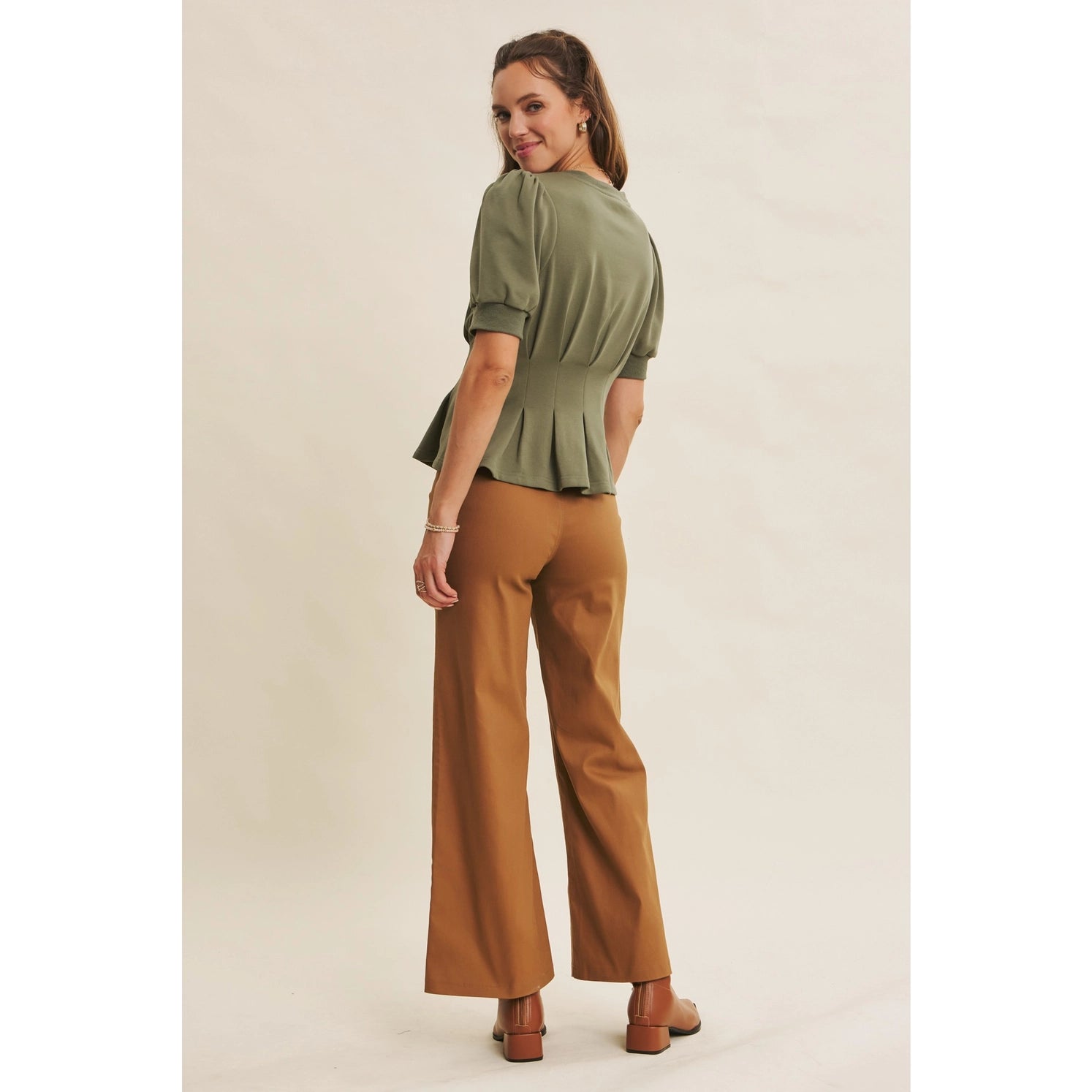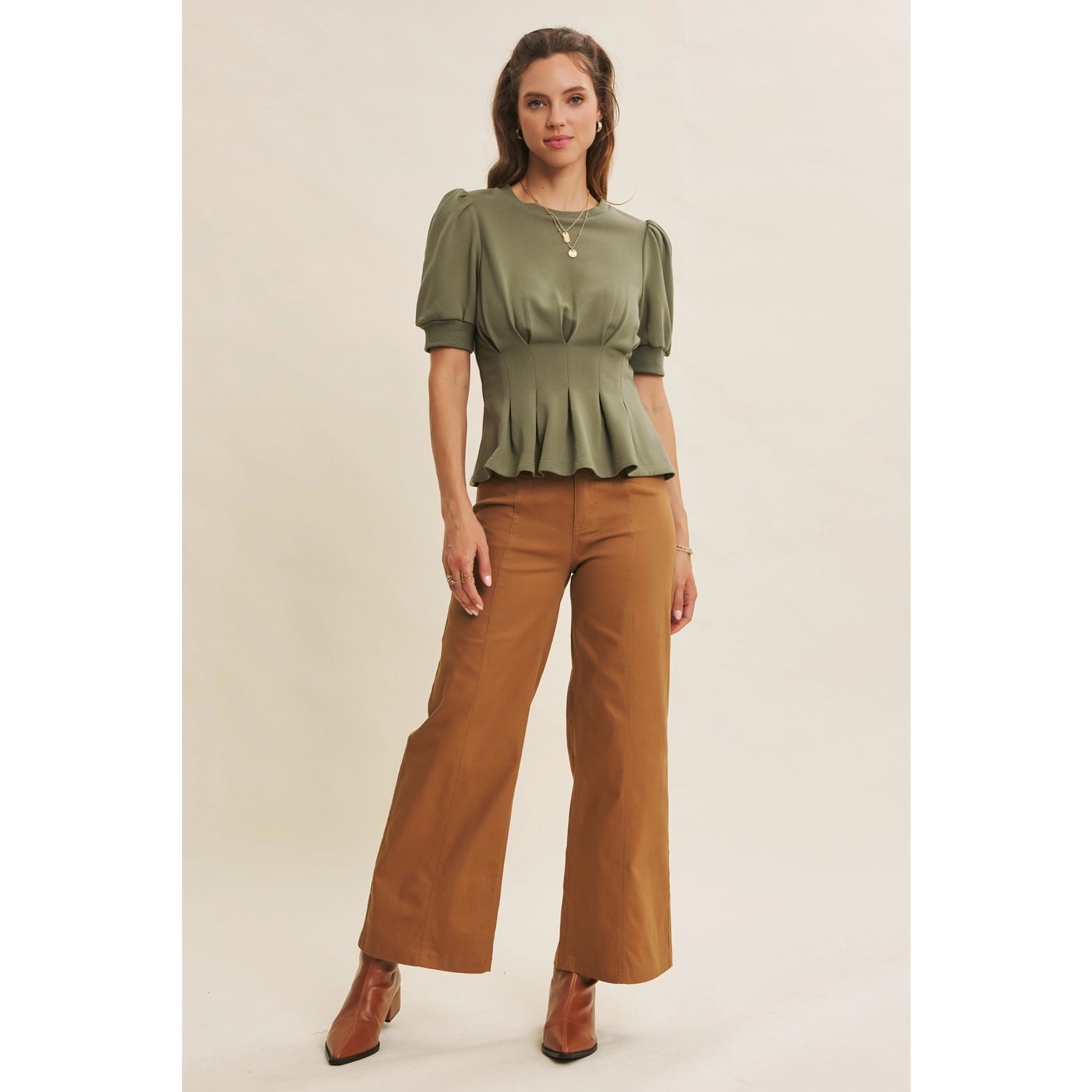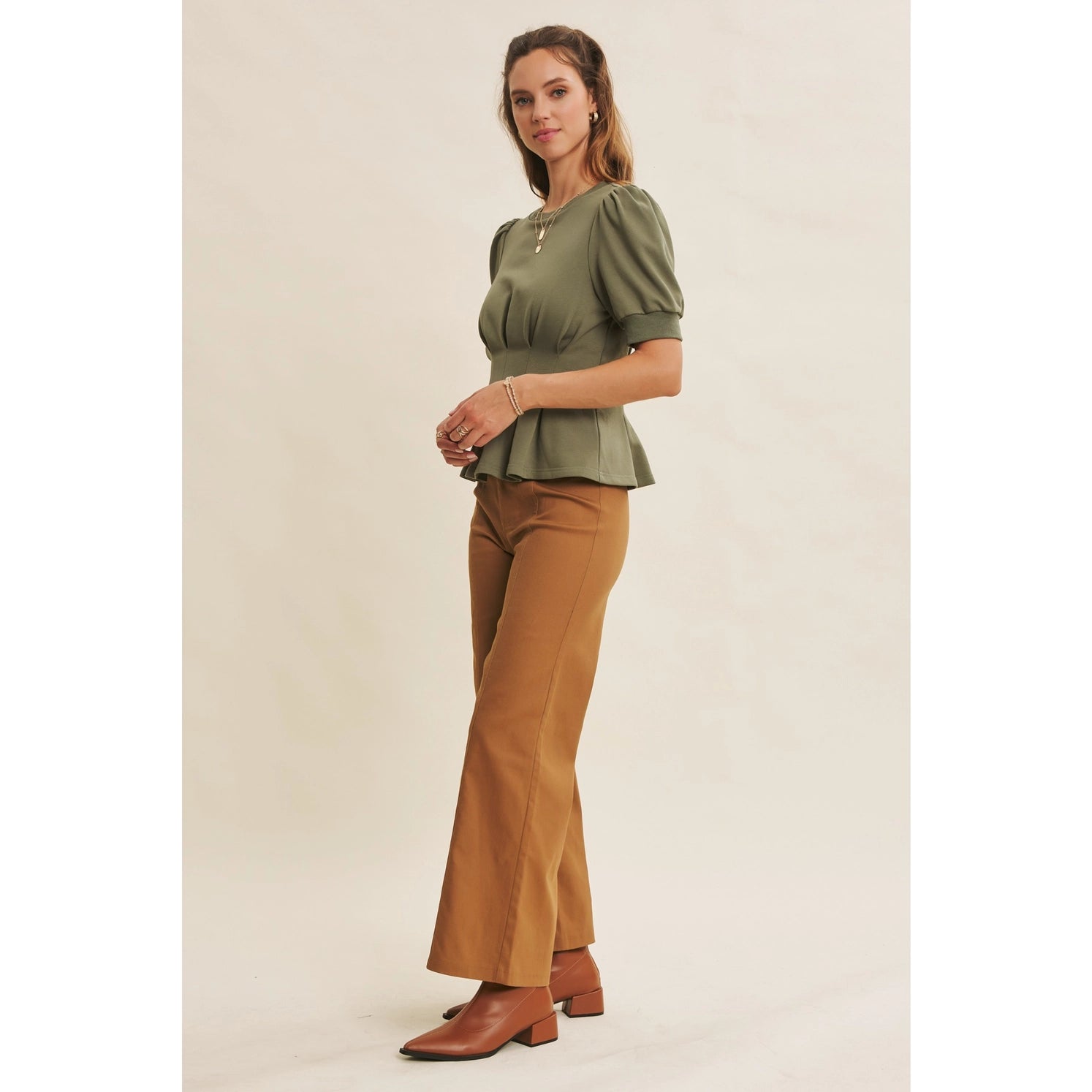 Effortlessly structured and endlessly flattering — this pleated waist top is the newest addition to our bestselling silhouette series. Designed with subtle puff sleeves and precise pleat work, it sculpts the waistline while offering soft comfort in a french terry fabric. The round neckline keeps it clean and versatile, making it a go-to for both casual days and dressed-up plans. Wear it with tailored trousers for a polished look or pair with denim for an elevated everyday outfit. A refined basic that’s anything but ordinary.