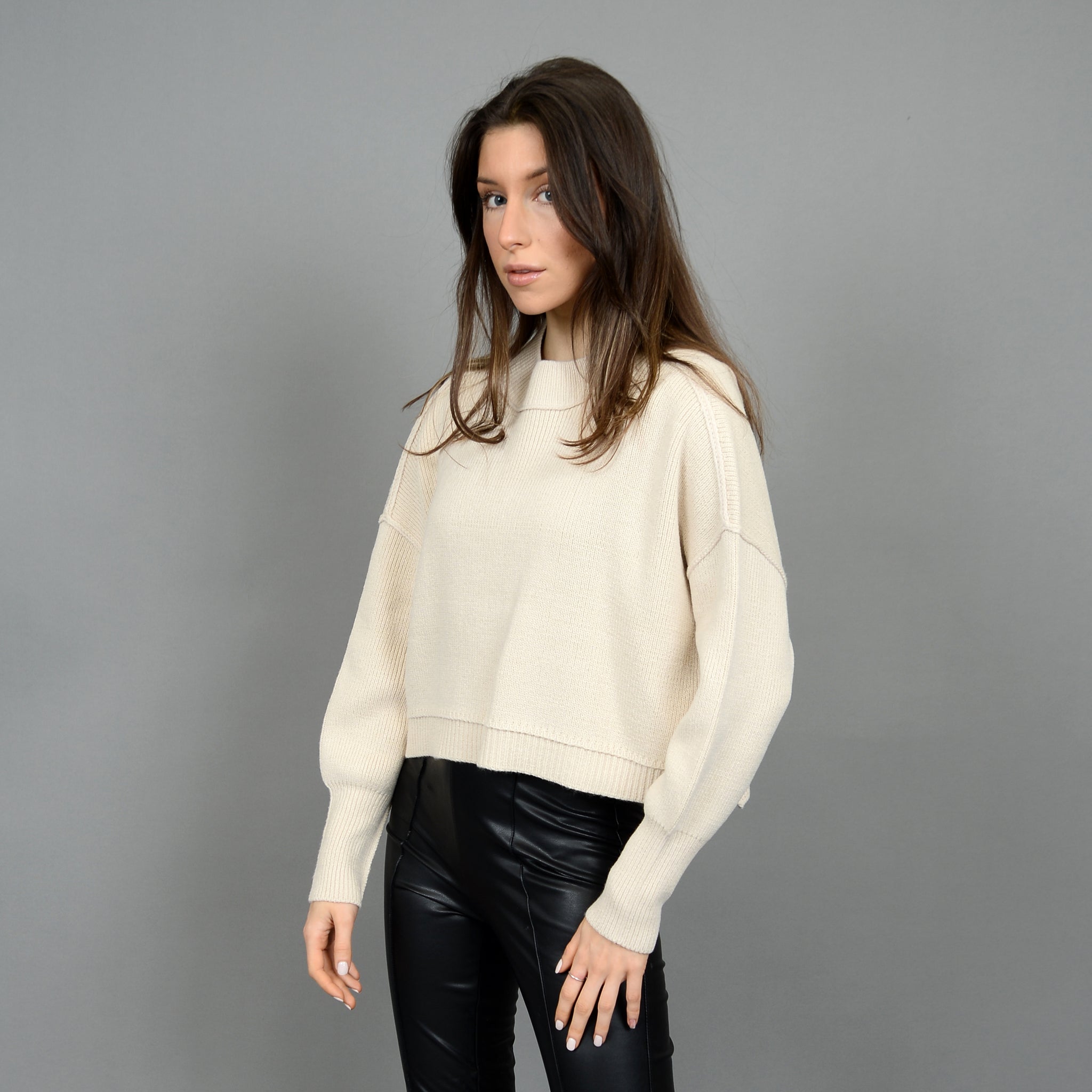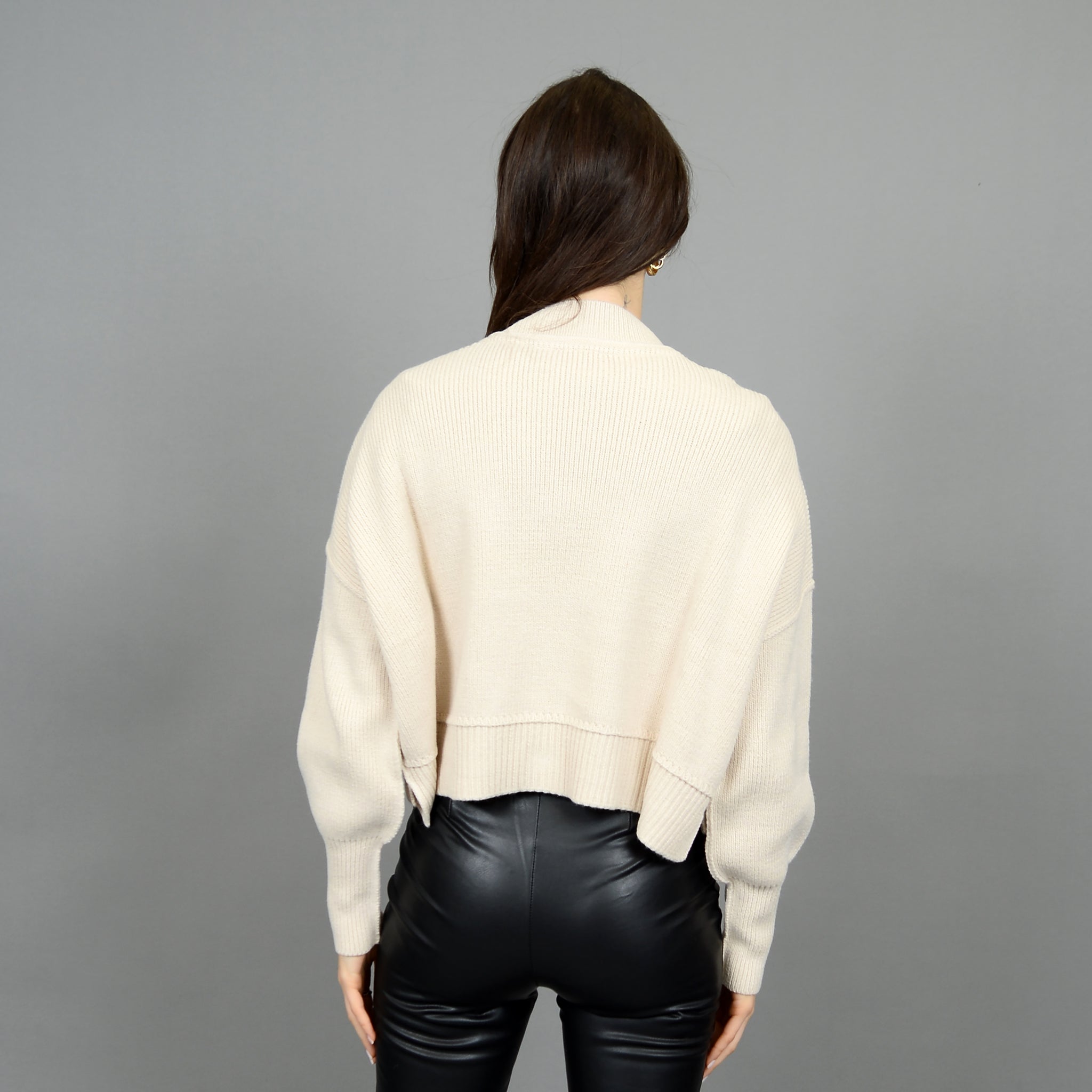 Stay stylish and cozy in our Sumire White Beach Sweater. This cropped pull over features long sleeves with ribbed detailing for added warmth and comfort. Perfect for those chilly winter days, this sweater will keep your look effortlessly cool. (No tacky turtleneck here!)