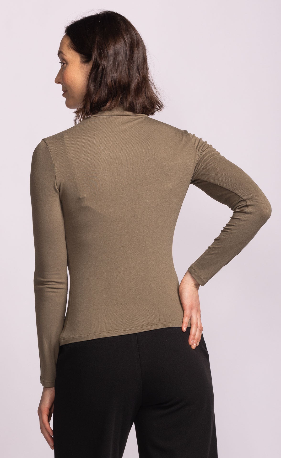 The Vienna Top features a mock neck and a basic design, making it the perfect piece for layering during fall. Its simple style complements any autumn outfit effortlessly.